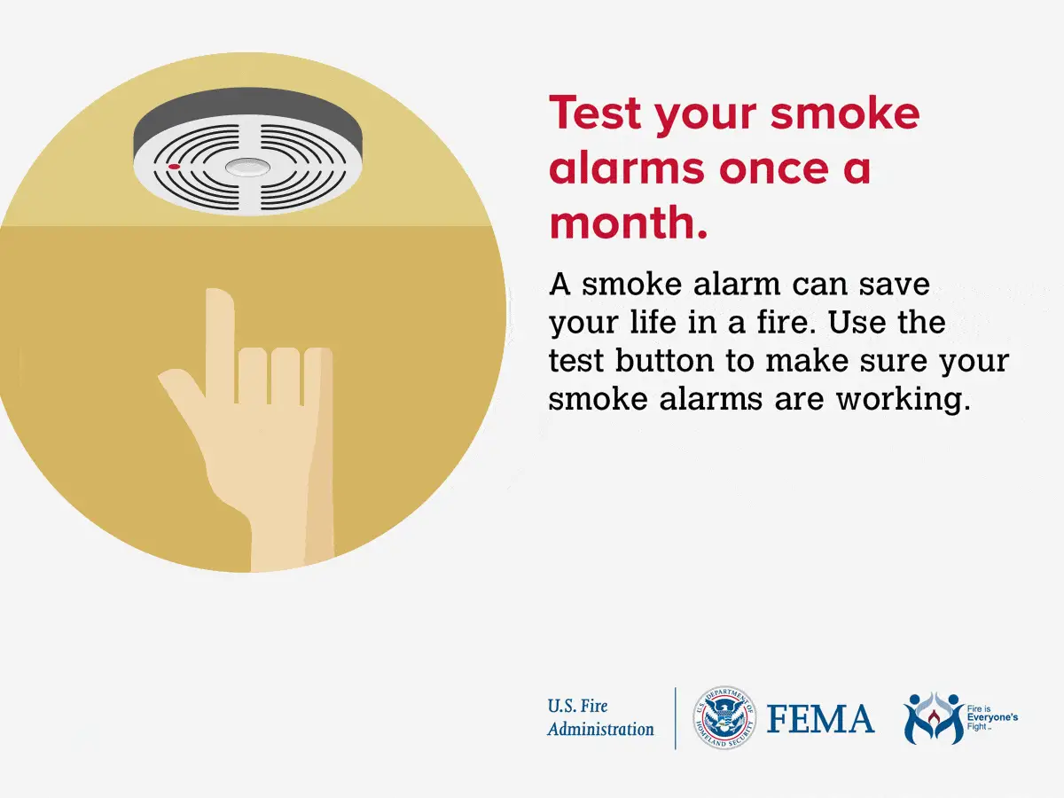 - Test your smoke alarms at least once a month. Press the test button to be sure the alarm is working.